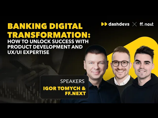 A new webinar about the world of Banking Digital Transformation is already here! You can watch the recorded webinar where experts from DashDevs and ff.next share their insights on how product development and UX/UI expertise are transforming the banking experience, especially for the younger generation. The webinar features a lively discussion that reveals the secrets to success in today’s digital market.