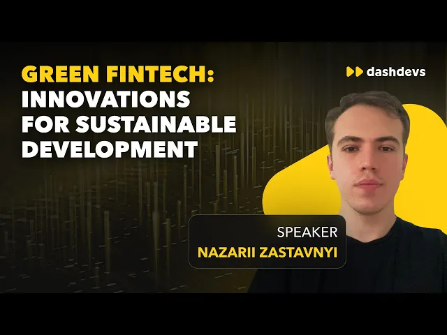 In this webinar recording, led by Nazarii Zastavnyi, Senior NodeJs Engineer and Tech Lead at DashDevs, you’ll gain insights into the world of Green Fintech and its potential impact on your business. Nazarii brings over six years of web development and database design expertise, delivering a thorough understanding of technology and sustainable finance.