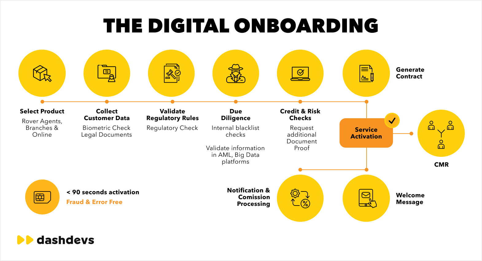 At DashDevs, we treat digital onboarding as the start of customer success, not just a technical requirement. Our approach combines a proven white-label foundation with deep expertise from global fintech projects. This allows banks to launch faster, reduce risk, and deliver onboarding flows that lead to real engagement.