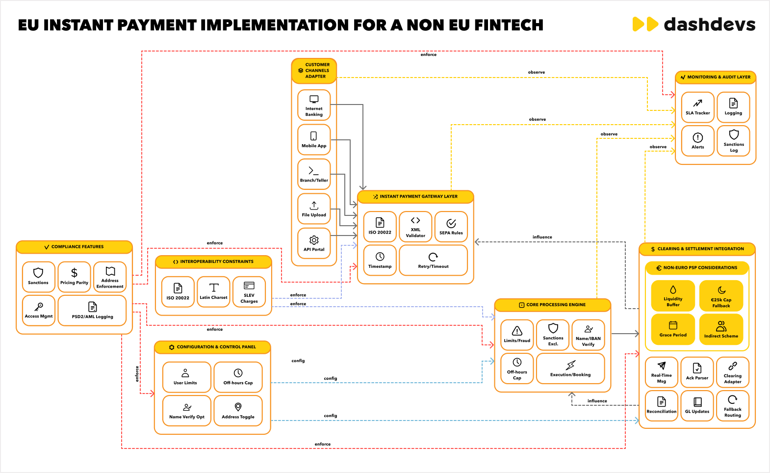 Here’s a reference diagram of EU instant payment implementation for a non-eurozone fintech